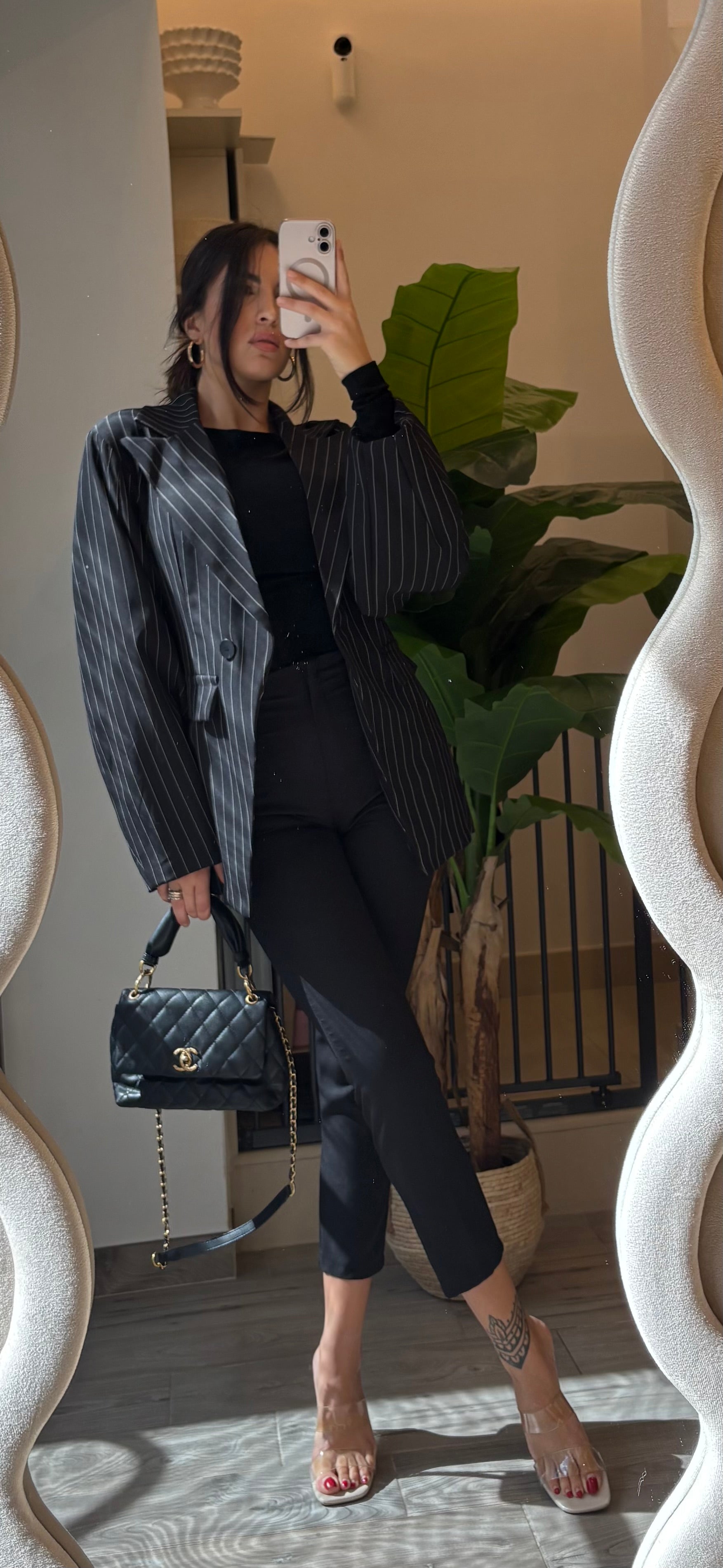 Blazer a righe con maniche a sbuffo